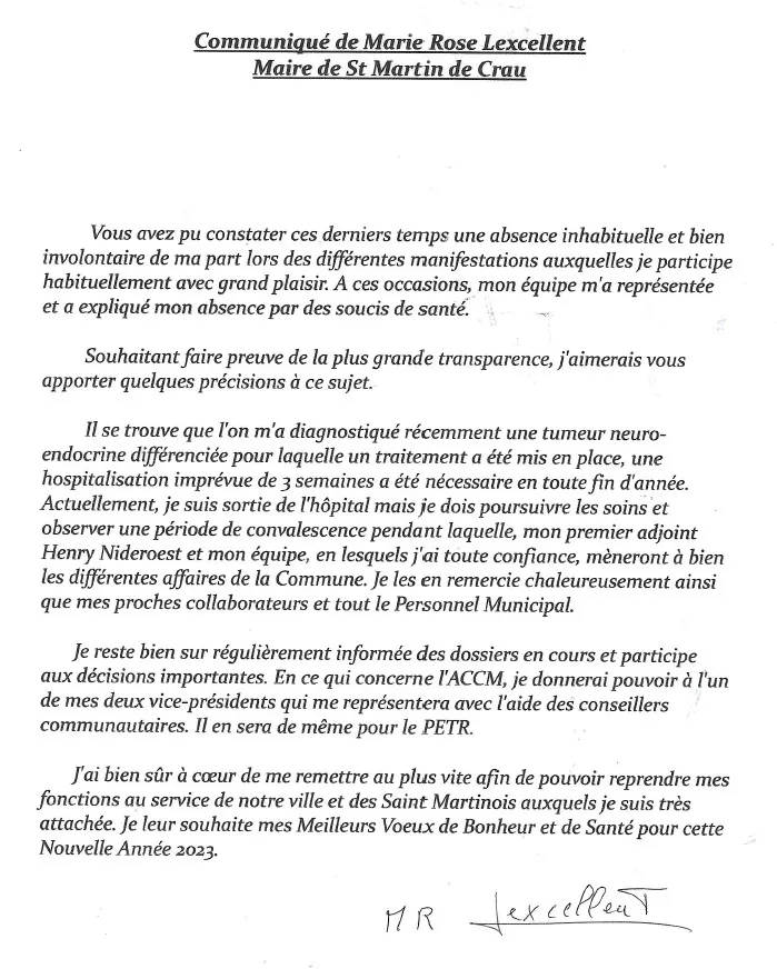[ POLITIQUE ] Saint-Martin de Crau: La maire Mme Lexcellent apporte des nouvelles de santé