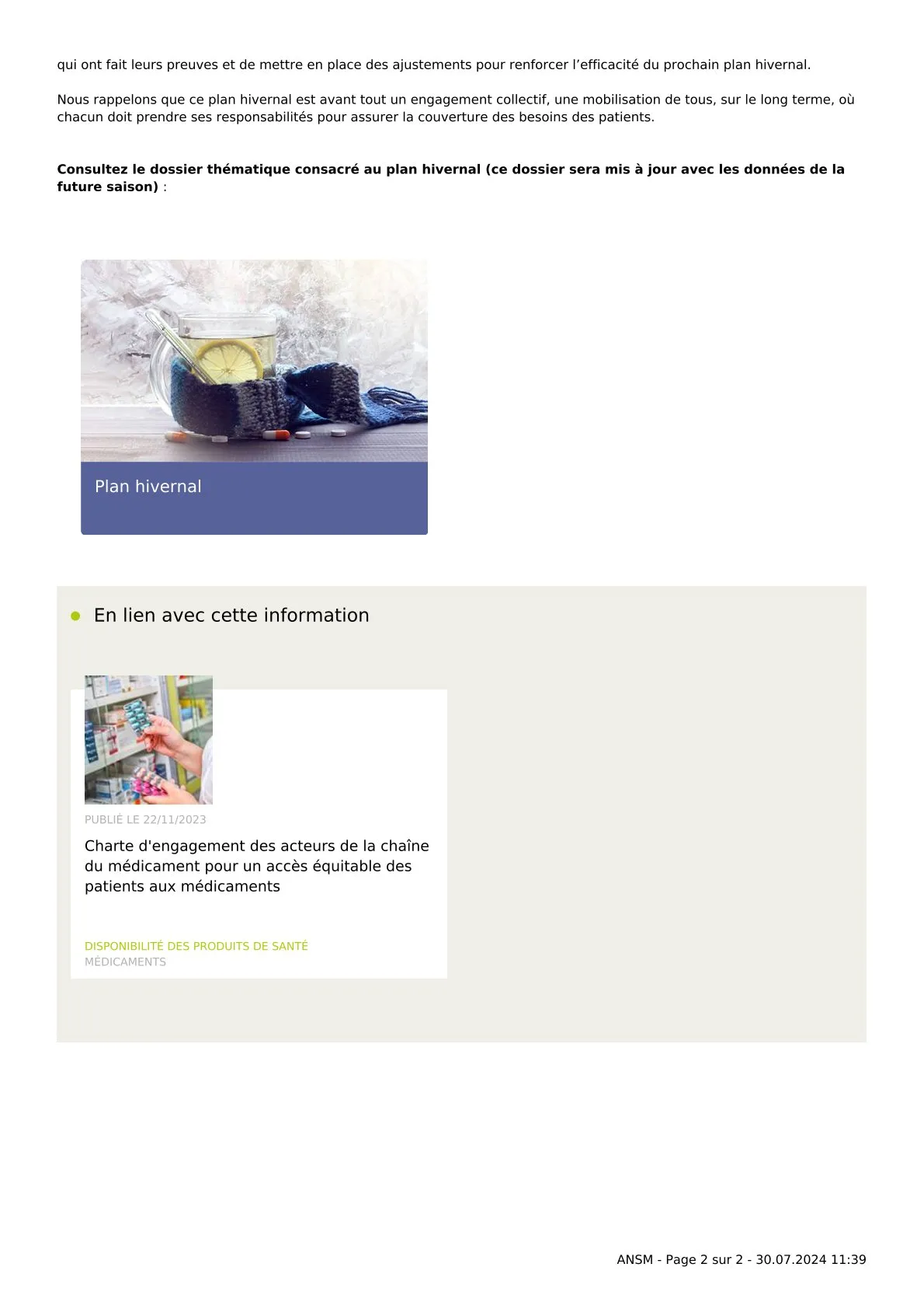 [ SANTE ] L'Agence du médicament prend des dispositions pour préparer l'hiver