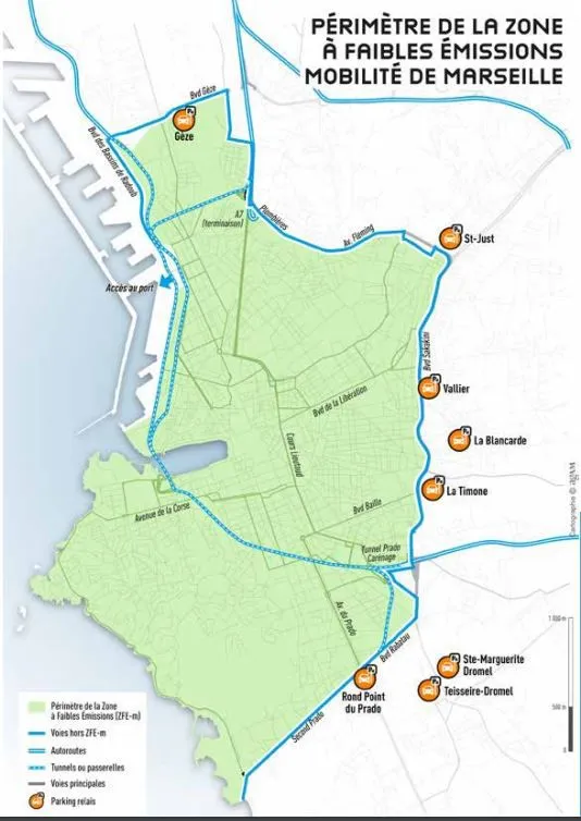 A Marseille, l’entrée en vigueur aujourd’hui de la zone faible émission. Cela concerne un périmètre de près de 20km² entre le boulevard Gèze et l’avenue du Prado 2. Les véhicules notés crit’air 5 n’ont plus le droit de circuler dans la ZFE. Ce sont les véhicules immatriculés en 2000, soit 2% des véhicules personnels, 4,4% des poids lourds et 1% des véhicules utilitaires sont concernés. L’an prochain, au 1er septembre, ce sera au tour de Crit air 4 d’être banni et en 2024 de la même date, les véhicules avec vignettes Crit’Air 3, selon France 3.